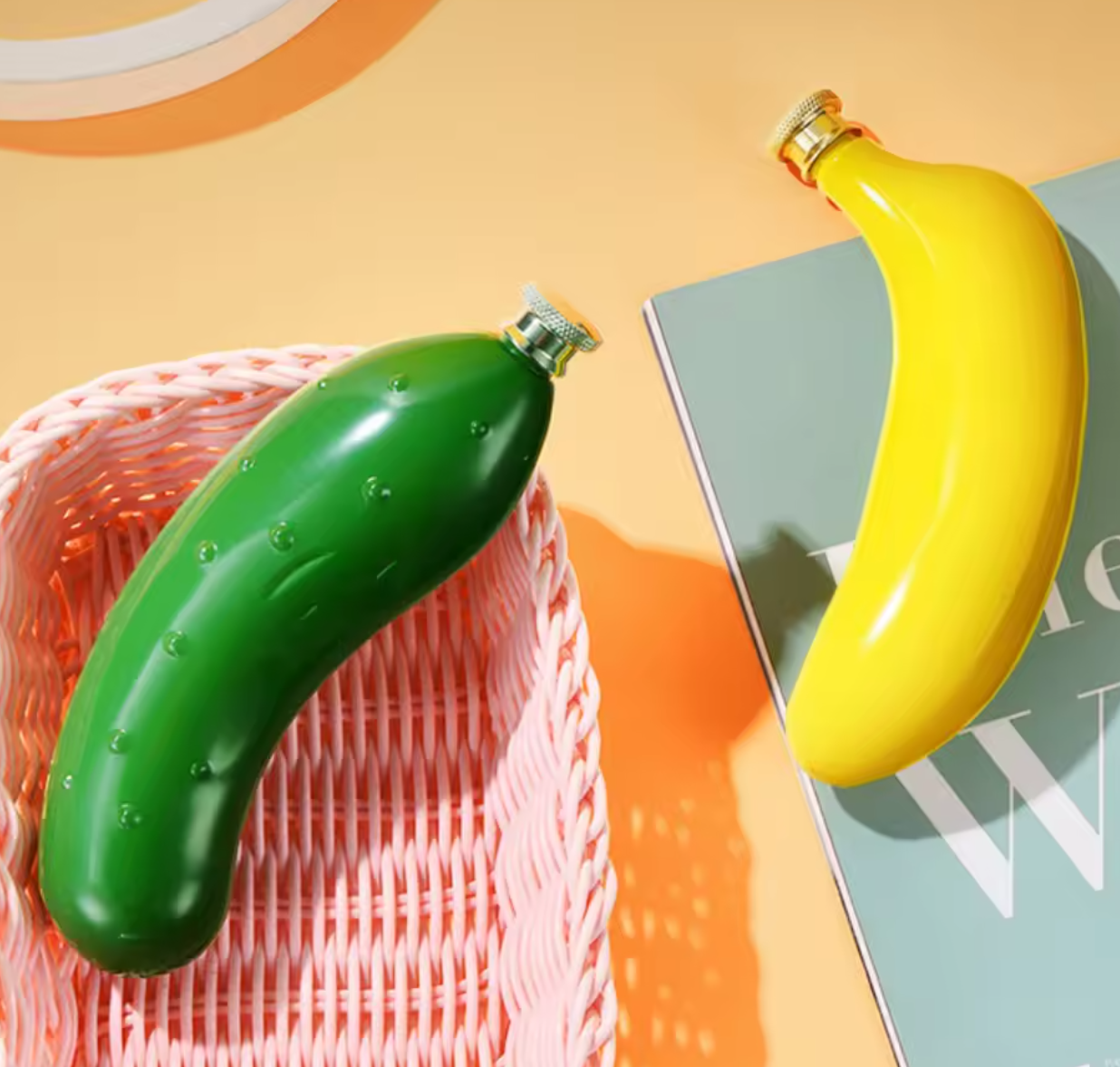 These funny flasks hold 5oz of fluid each. Will you choose Banana or Pickle?